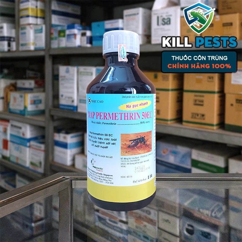 Thuốc diệt muỗi Map Permethrin 50EC là chế phẩm trừ muỗi và côn trùng hiệu quả cao do tập đoàn hóa chất Hockley International (Anh Quốc) sản xuất và được Map Pacific Việt Nam phân phối. Sản phẩm được thiết kế đặc biệt để đặc trị các loài muỗi phổ biến như muỗi Anophen, muỗi Aedes (muỗi vằn), muỗi Culex – những vector truyền bệnh nguy hiểm như sốt xuất huyết, sốt rét và viêm não Nhật Bản.